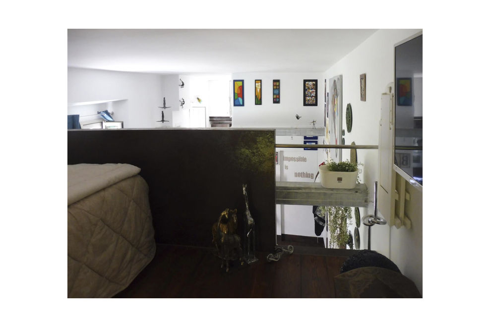 Riqualificazione spaziale e restyling di un piccolo appartamento con zona giorno a doppia altezza (composto da cucina abitabile, salotto, zona studio e servizio) e zona notte soppalcata che si affaccia sulla prima.. Il pavimento scuro - alleggerito visivamente dal total white dei muri e della scala a sbalzo realizzata su disegno - si comporta come elemento di connessione di tutto lo spazio.